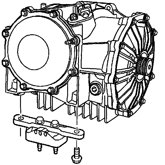 11. Remove the two plug bolts from the front of driveline support assembly.