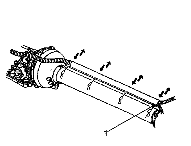 38. Release the retainer (1) securing (and positioning) the wiring harness to the L-shaped brackets along the driveline support assembly, then slide the harness up out of the brackets and position out of the way.