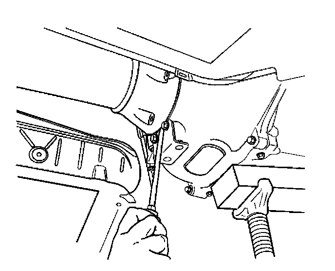Notice: When tilting down the rear of the driveline, observe the clearance between the rear of the engine and the composite dash panel. Do not allow the engine to rest unsupported against the composite dash panel, or vehicle damage may result.