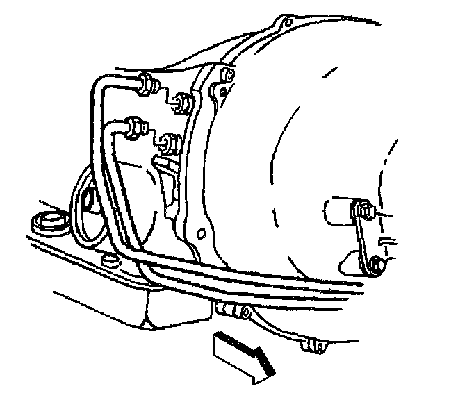 63. Disconnect the transmission oil cooler rear pipes from the fittings on the transmission, then cap the pipes and plug the transmission fittings to prevent contamination.