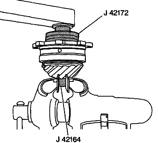 1. Remove the pinion nut using the J 42172 and the J 42164.