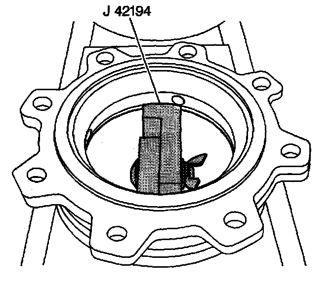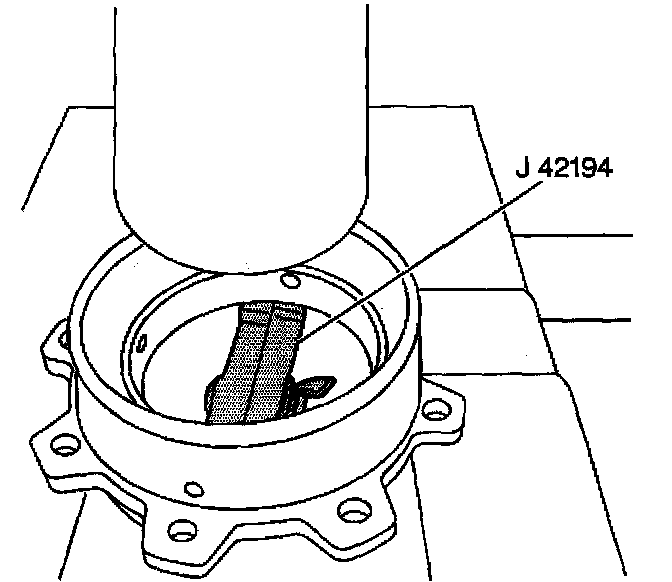 7. Use the J 42194 and a hydraulic press in order to remove the bearing race from the housing/cage.