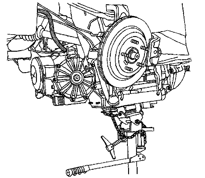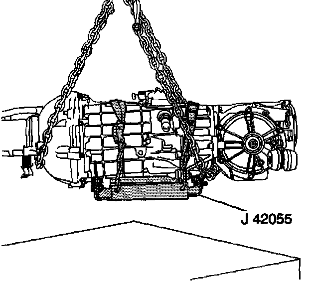 43. Release the J 42055 from the transmission, then remove the J 42055 and transmission jack.