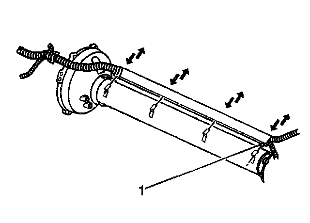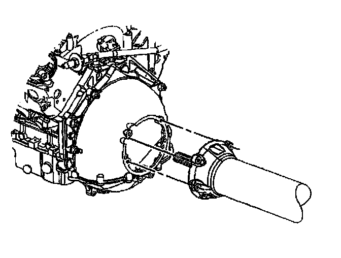 Installation ProcedureNotice: When tilting down the rear of the driveline, insert a putty knife or similar tool between the shift control bracket on the driveline support assembly and the brake pipe retainer on the driveline tunnel wall to prevent damage.