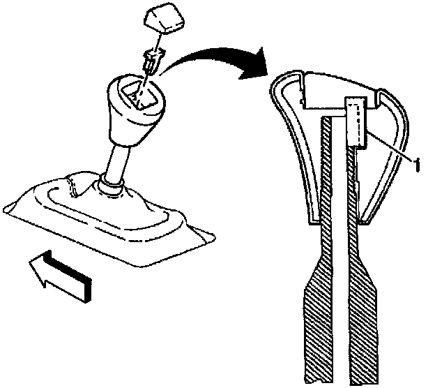 78. Install the shift control knob retainer (1) into the slots and seat fully.