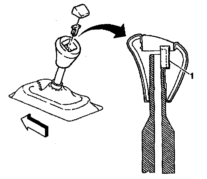 3. Install the shift control knob retainer (1) into the slots and seat fully.