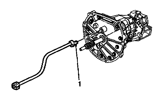 4. Using a drift or punch, remove the roll pin (1) retaining the transmission shift rod to the transmission shift shaft.