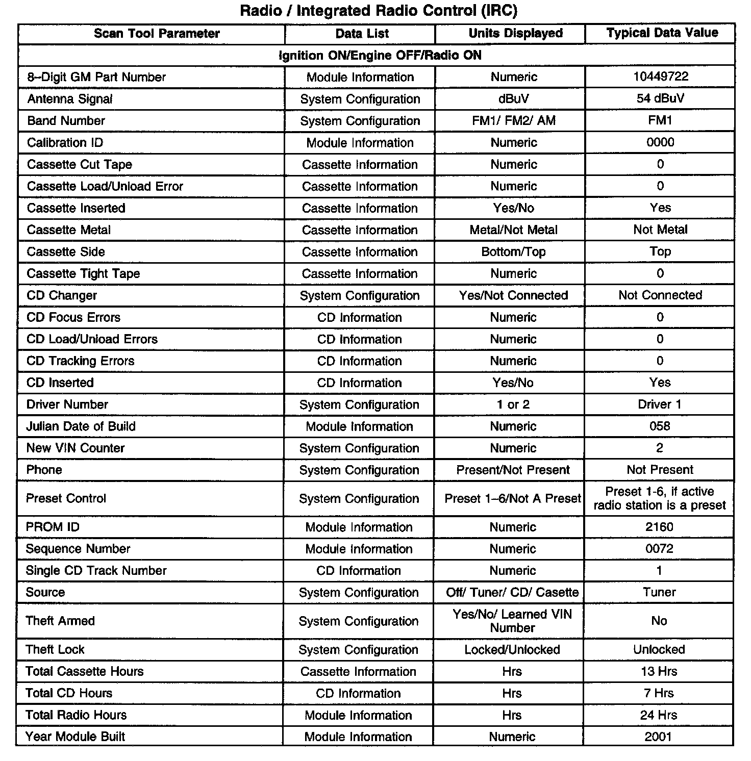 Scan Tool Data List