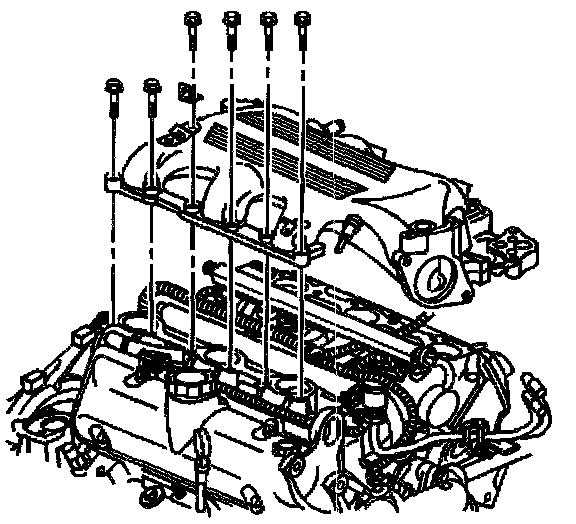 15. Remove the left upper intake manifold bolts.
