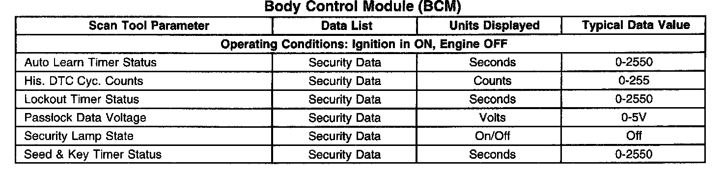 Scan Tool Data List - Antitheft System