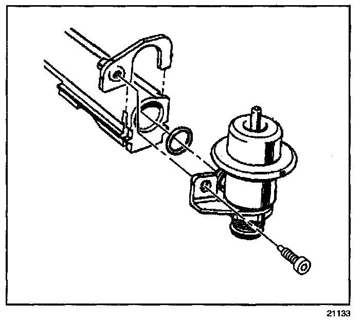 CAUTION: Connect the fuel return line before tightening the regulator attaching screw In order to prevent the regulator from rotating. Rotation of the regulator could damage the retainer and spacer bracket and lead to a fuel leak at the regulator inlet.