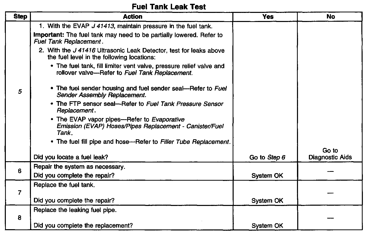 5. This test locates fuel vapors escaping above the fuel level in the fuel tank.