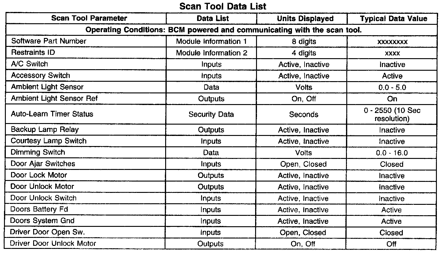 Scan Tool Data List