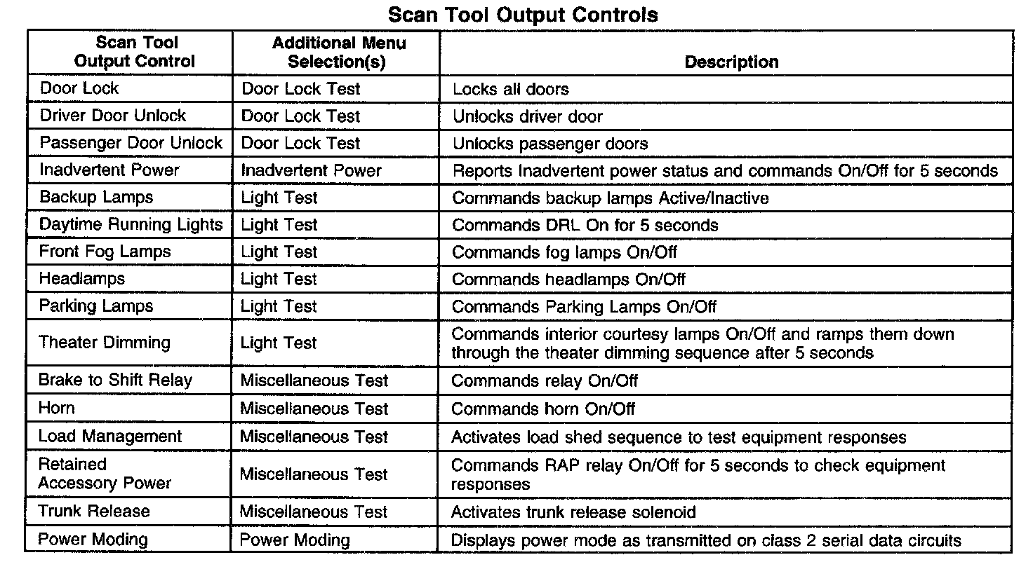 Scan Tool Output Controls: