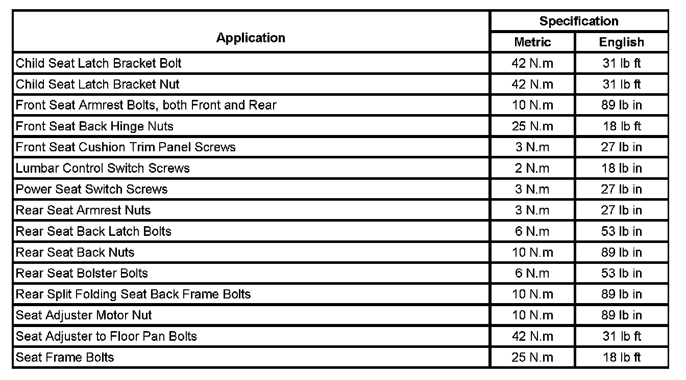 Seats: Specifications