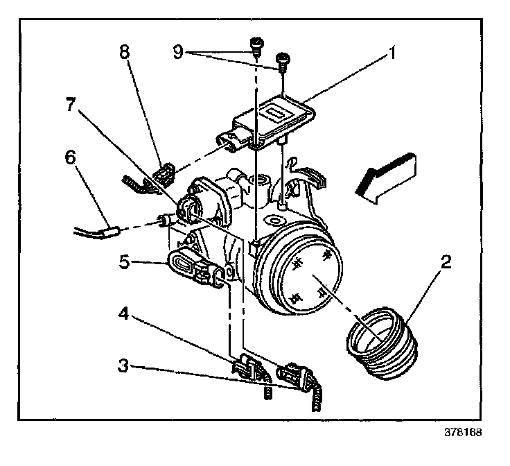 IMPORTANT: The mass air flow (MAF) sensor is attached to the throttle body assembly.