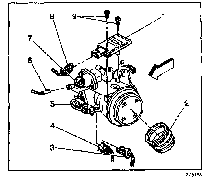 2. Install the MAF sensor screws (9).