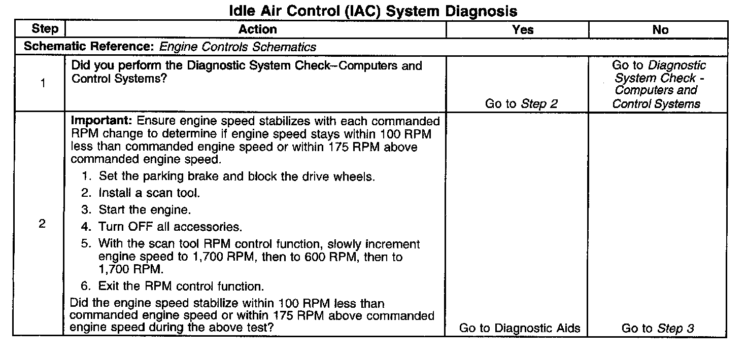 ^ A low or unstable idle condition could be caused by a non-IAC system problem that can not be overcome by the IAC valve. Refer to Symptoms-Computers and Controls Systems. Symptom Related Diagnostic Procedures