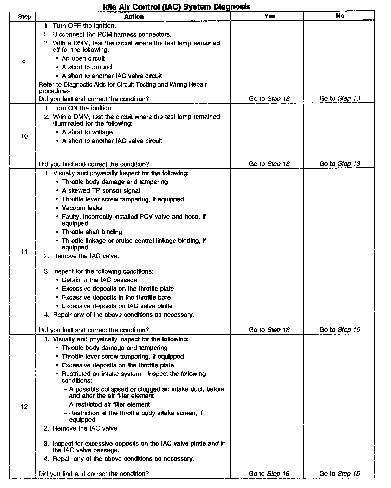 ^ A high or unstable idle condition could be caused by a non-IAC system problem that can not be overcome by the IAC valve. Refer to Symptoms-Computers and Controls Systems. Symptom Related Diagnostic Procedures