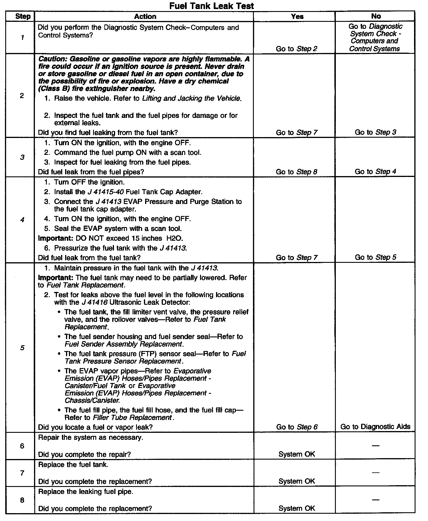 Fuel Tank: Testing and Inspection