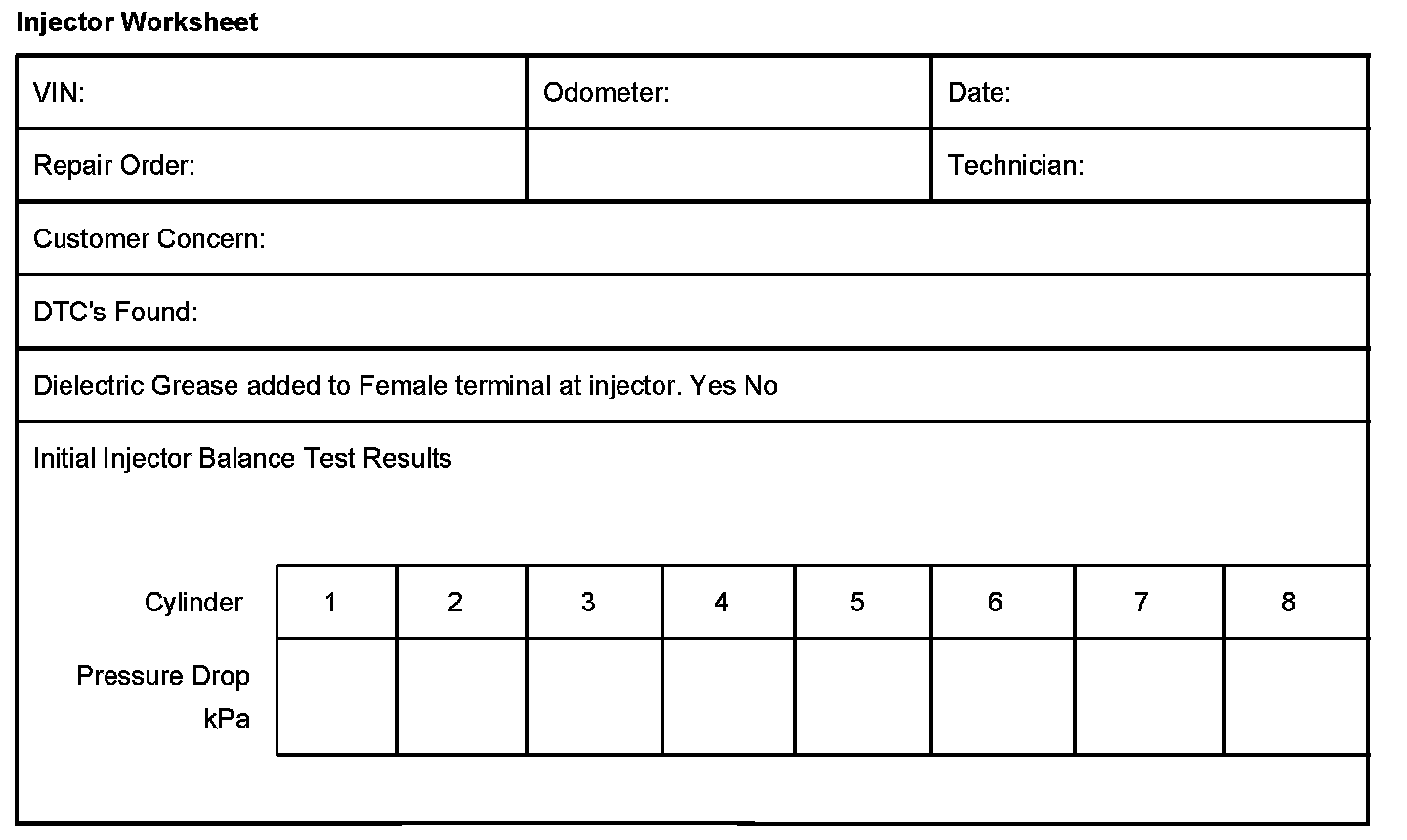 Technicians must record the results of all injector balance tests and keep them with the repair order. For your convenience, the bulletin has a worksheet shown for recording the test results.