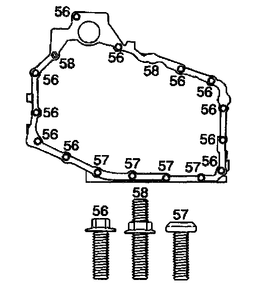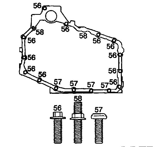 3. Install the case side cover bolts (56, 57, 58).