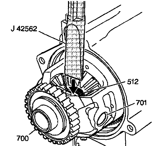 4. Place the J 42562 between the end of the output shaft and the differential pinion shaft.