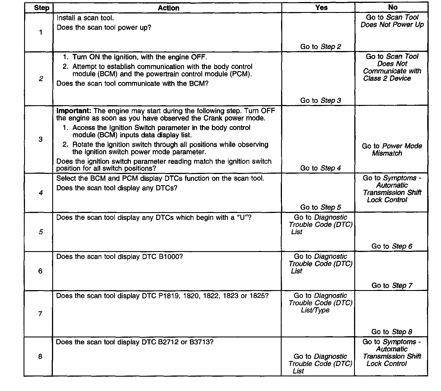 2. Lack of communication may be due to a partial malfunction of the class 2 serial data circuit or due to a total malfunction of the class 2 serial data circuit. The specified procedure will determine the particular condition.