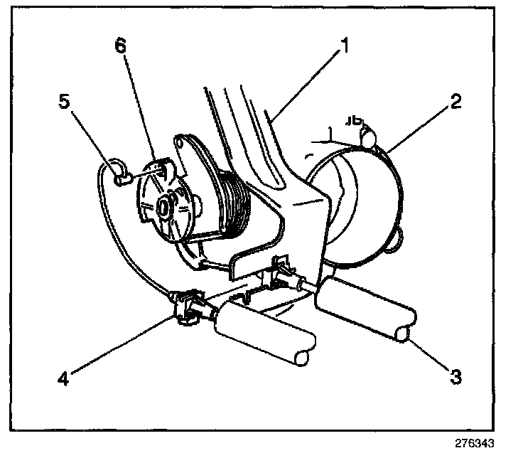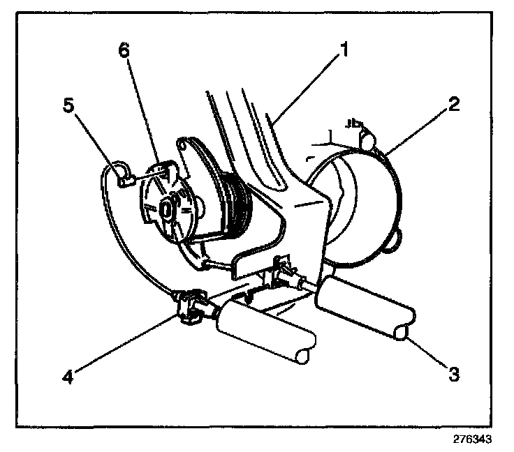 2. Disconnect the cruise control cable tab (5) from the throttle body cam (6). Rotate the cam (6) to 1/4 open throttle in order to release the tab (5).