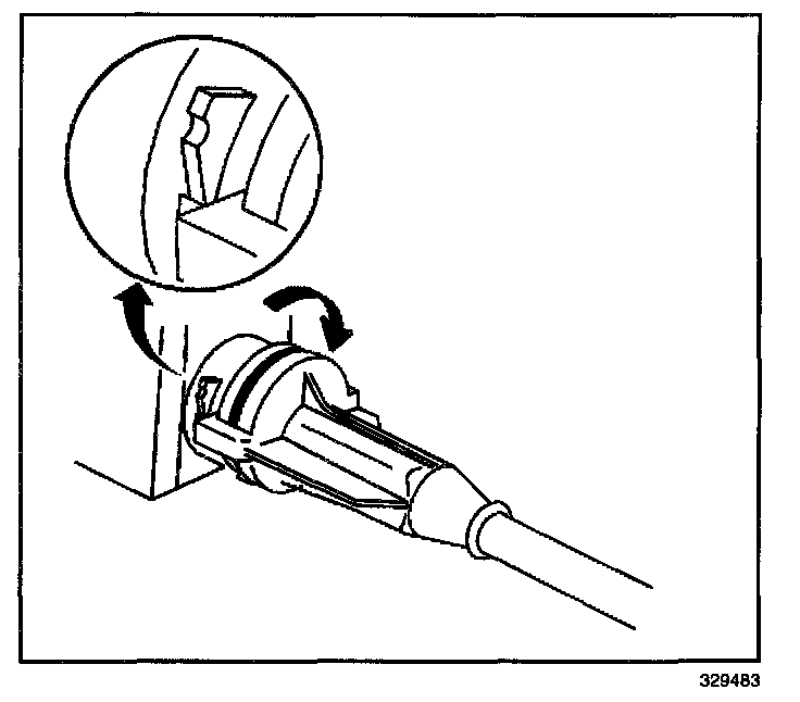 4. Install the cruise control cable to the module assembly by turning the cable assembly 1/4 turn clockwise.