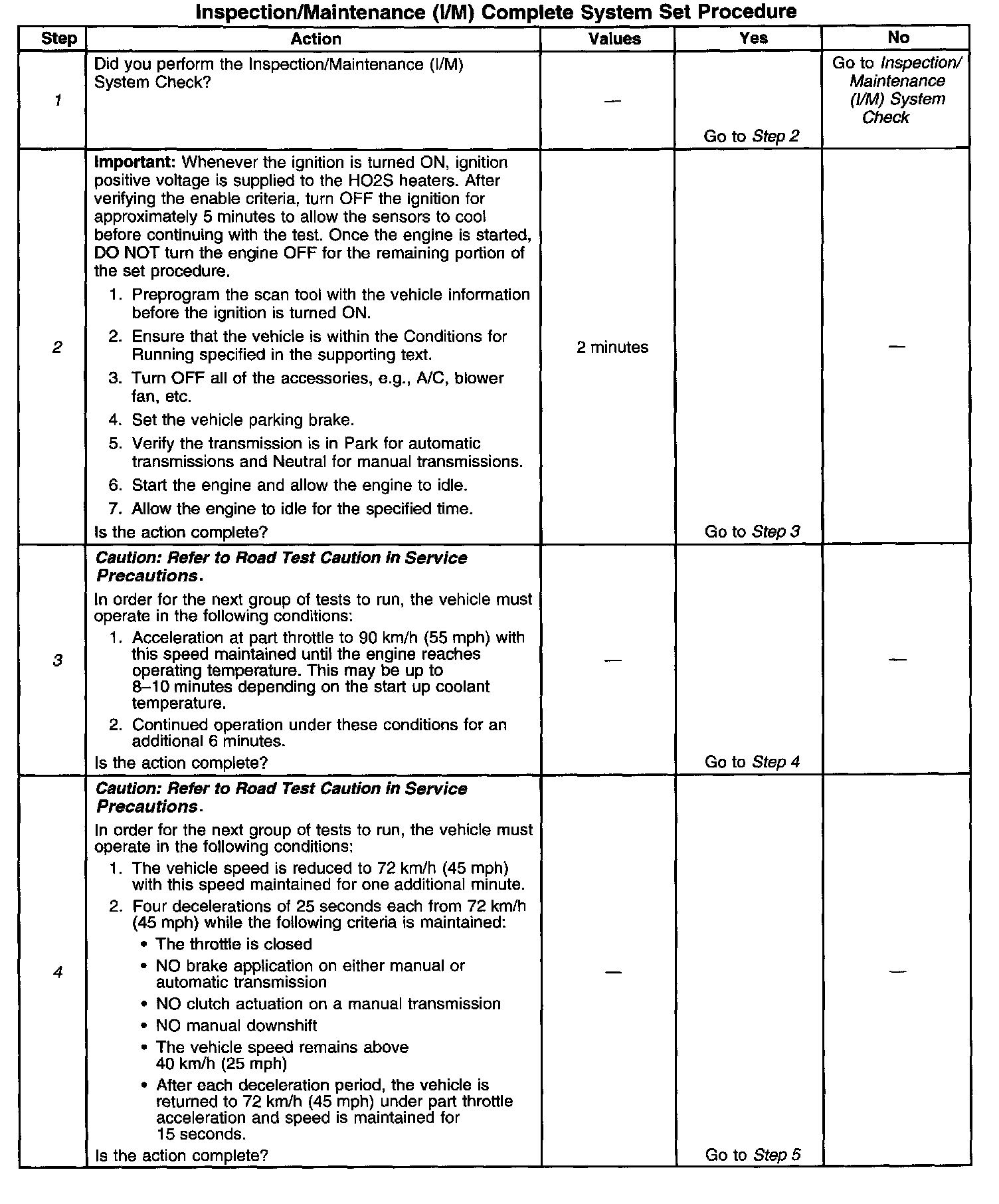 1. Perform the I/M System Check before performing this test. Failure to do so may result in difficulty updating the status to YES. Inspection/Maintenance (I/M) System Check