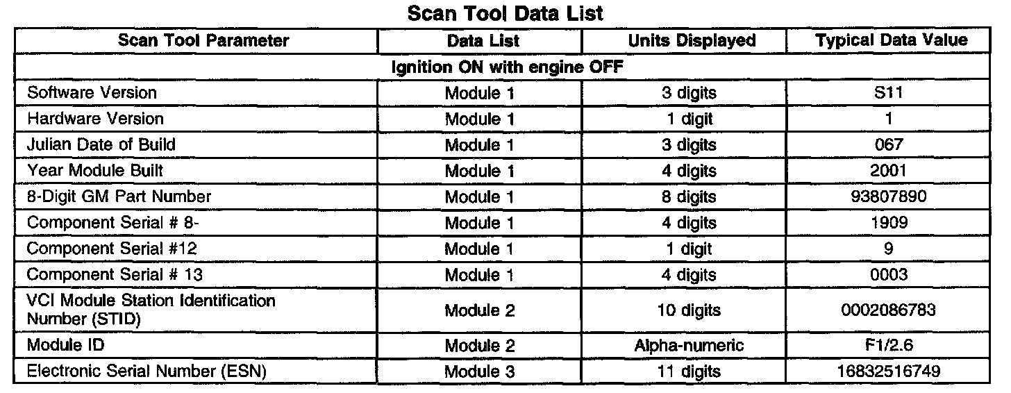 Scan Tool Data List: