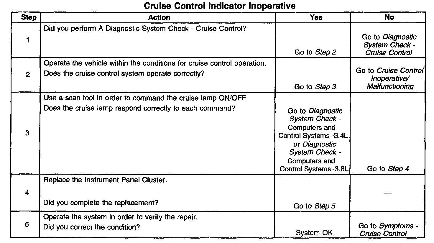 Cruise Control - Indicator Inoperative
