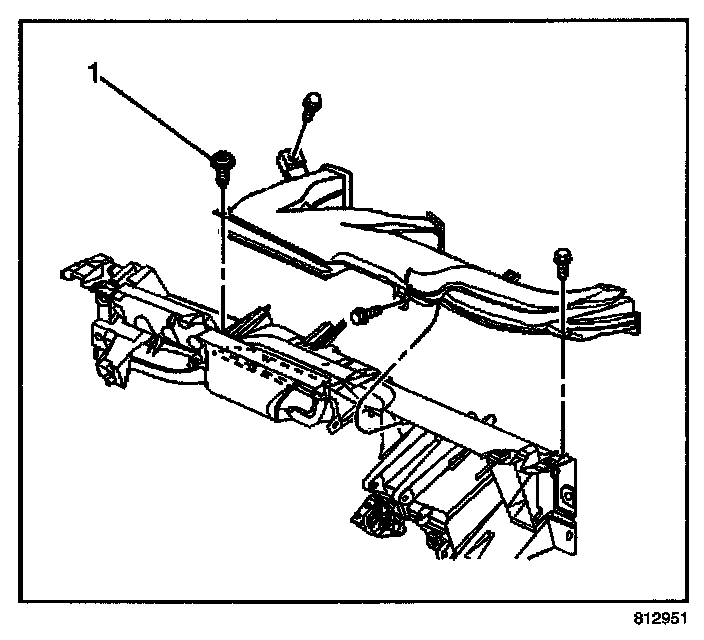 12. Remove the retaining screw (1) from the panel sir duct.