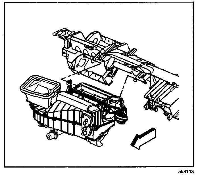 IMPORTANT: Reposition the heater core hose clamps in the indicated location.