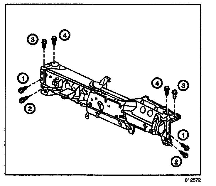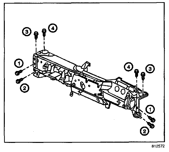 25. Remove the bolts from the HVAC module center support.