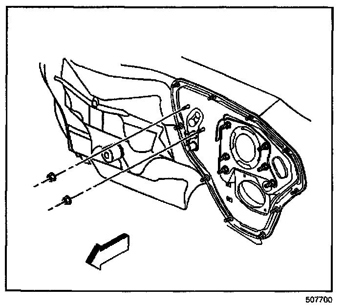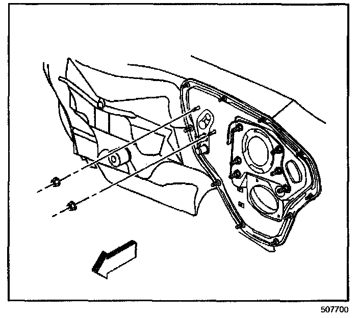 13. Remove the retaining bolts from the panel air duct.