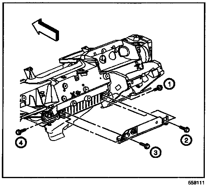 26. Remove the bracket from the HVAC module center support.