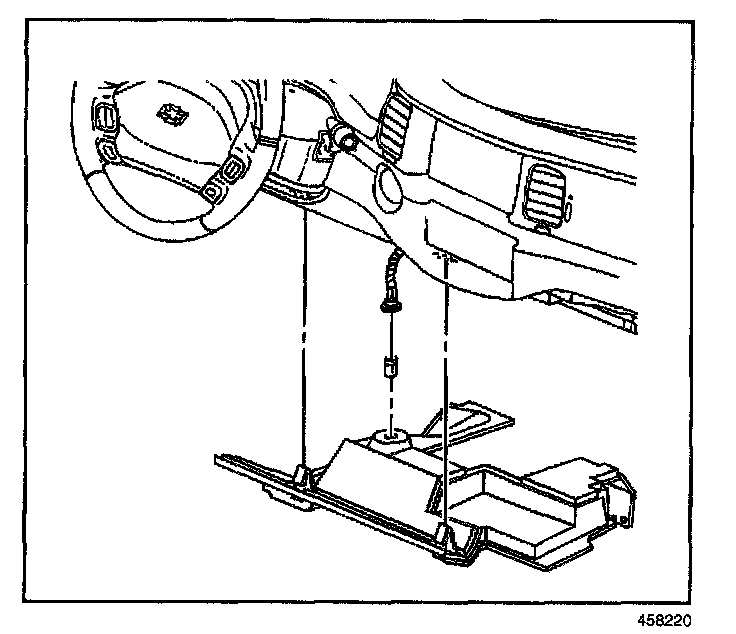 2. Remove the instrument panel courtesy lamp socket, turning counterclockwise.