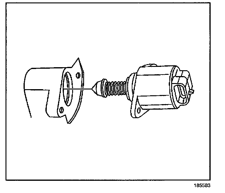 NOTE: The IAC valve may be damaged if installed with the cone (pintle) extended more than 28 mm (1-1/8 in). Measure the distance that the valve is extended before installing a new valve. The distance from the idle air control valve motor housing to the end of the idle air control valve pintle should be less than 28 mm (1-1/8 in). Manually compress the pintle until the extension is less than 28 mm (1-1/8 in).