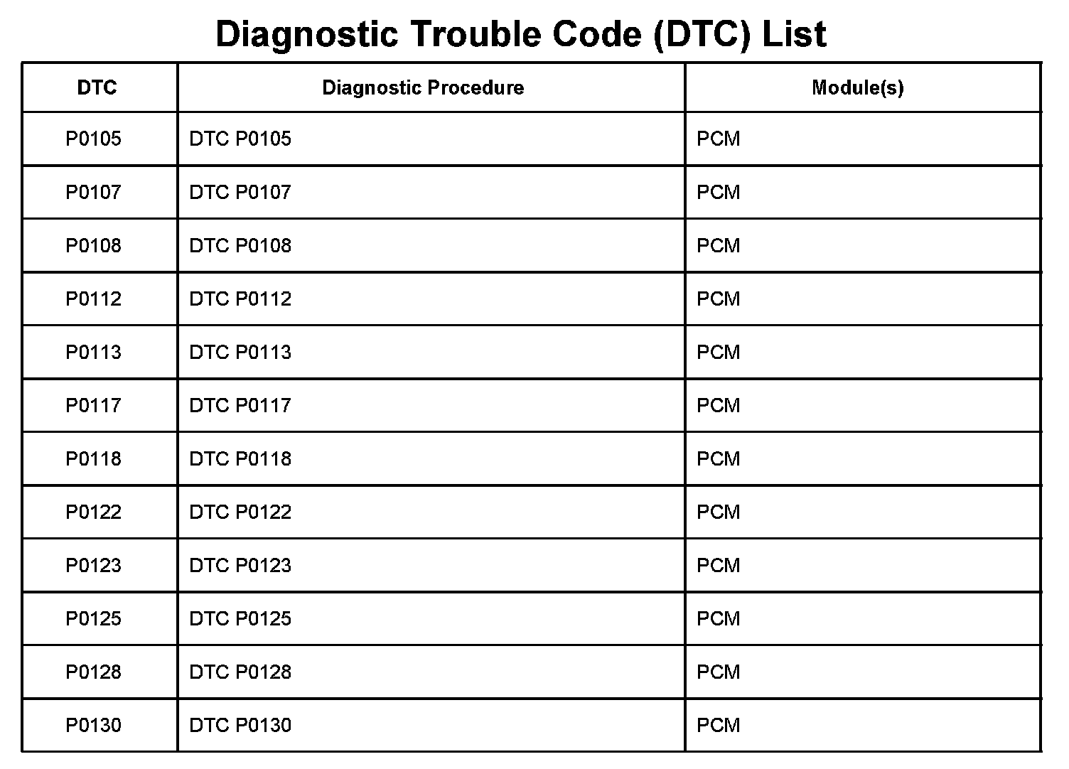 Diagnostic Trouble Code (DTC) List Part 1: