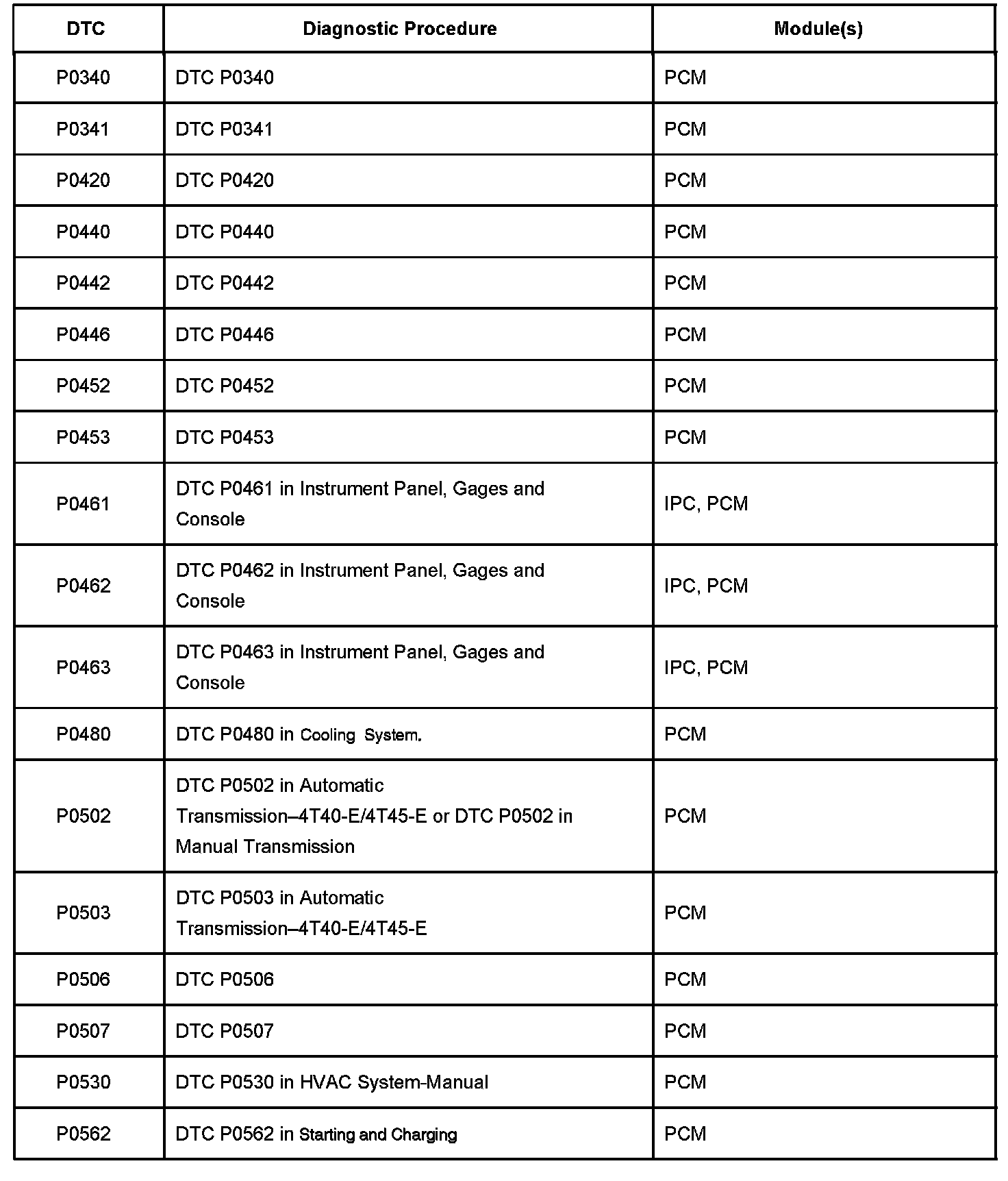Diagnostic Trouble Code (DTC) List Part 3: