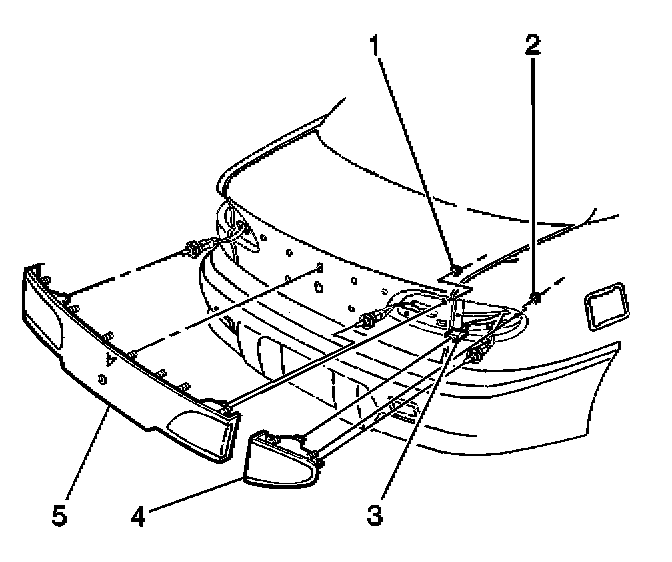 2. Remove the nuts (1) from the rear compartment lid applique.