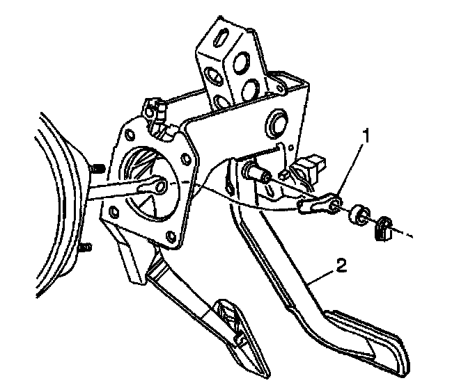 7. Disconnect the brake booster pushrod (1) from the brake pedal (2).