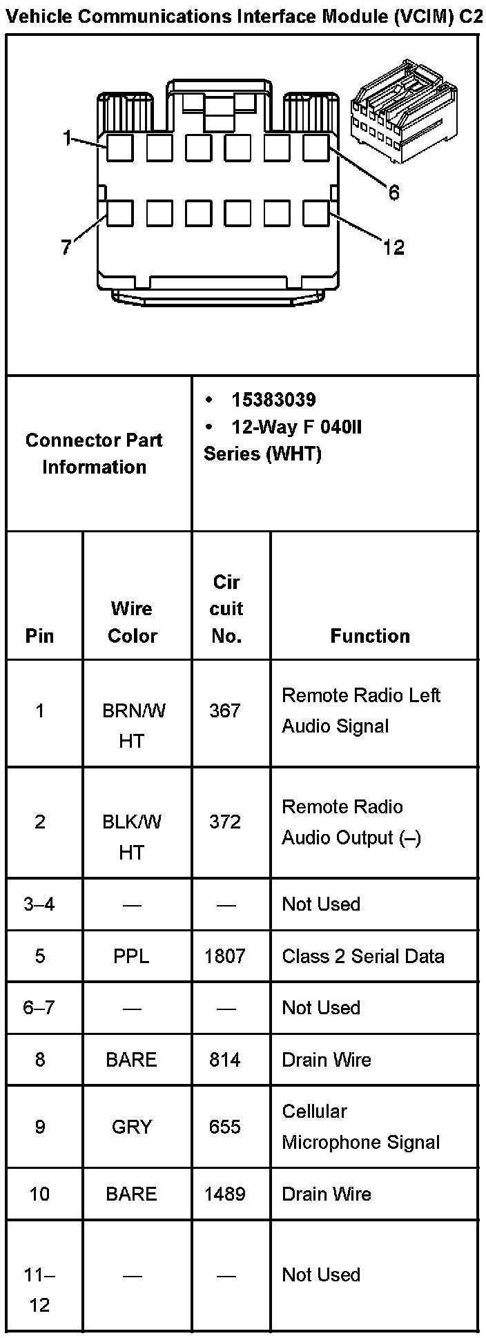 Vehicle Communications Interface Module (VCIM) C2: