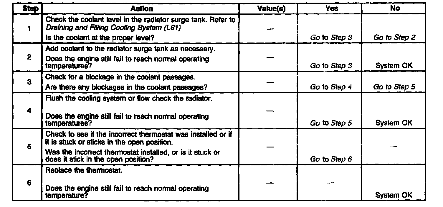 Engine Fails To Reach Normal Operating Temperature Step 1 - 6: