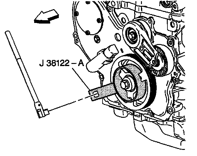 1. Remove the flywheel attaching bolt. Use the J 38122-A to prevent crankshaft rotation.