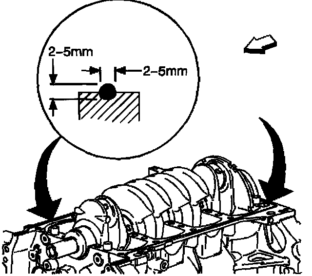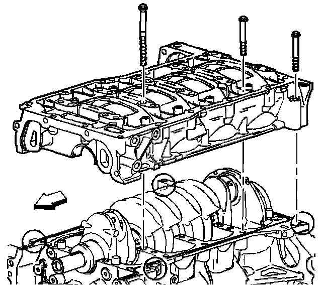 4. Apply sealer GM P/N 12346286 (Canadian P/N 10953477) to the surfaces of the engine block to bedplate mating surfaces.