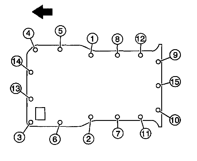 ^ Tighten the oil pan bolts to 25 Nm (18 lb ft) in sequence.