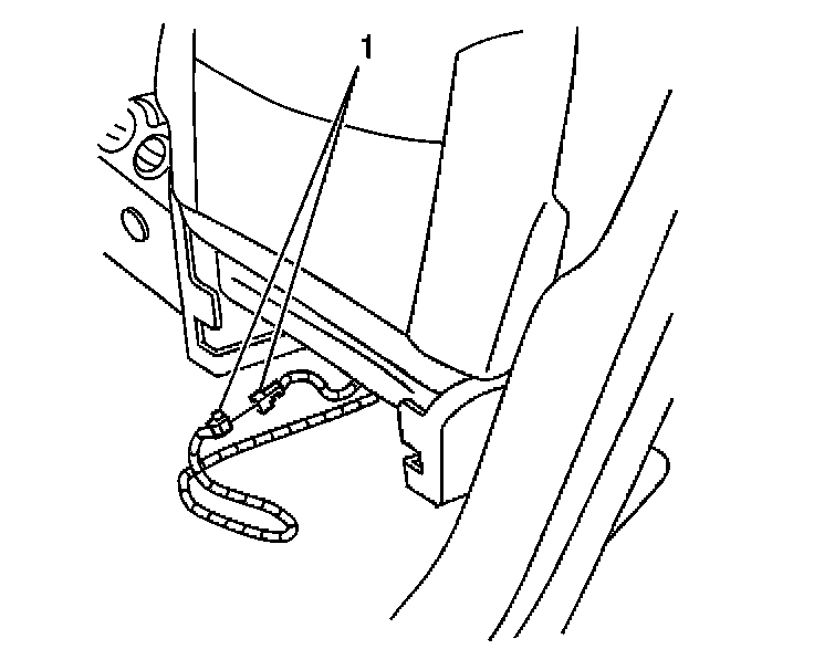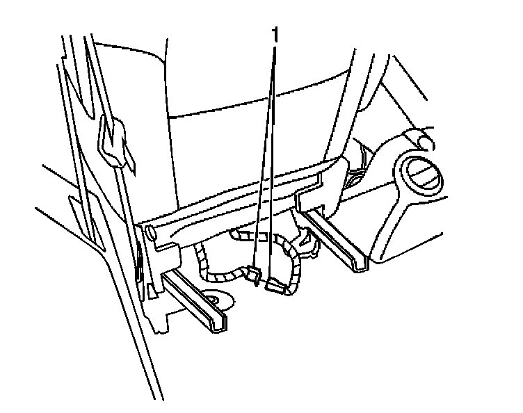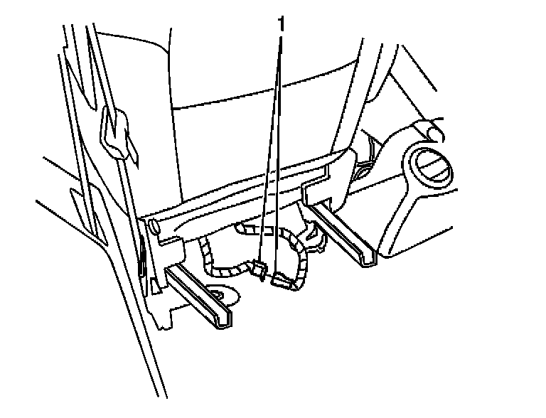 43. Disconnect the inflatable restraint side impact module - RF connector (1), located under the passenger seat.